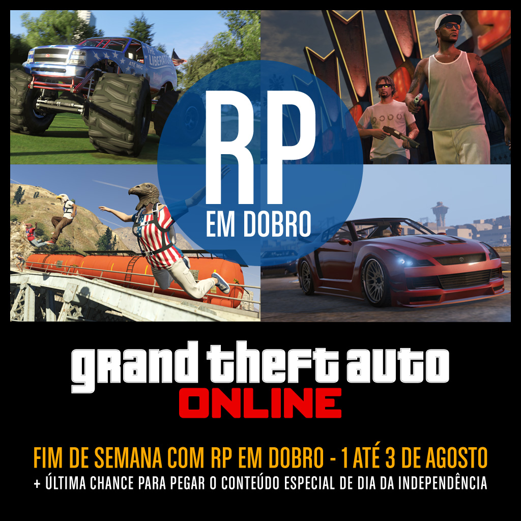 Começando amanhã, 1º de agosto, e durante todo o fim de semana até a meia-noite EST do dia 3 de agosto, domingo, ganhe RP x 2 no GTA Online. Todos os Serviços e outras atividades que geram RP, como Ataques de Gangues, Assaltos, Importação/Exportação e outros, irão gerar o dobro de RP.